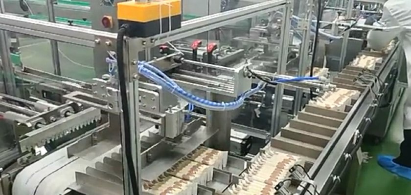 全自动装盒机是一款全自动开盒、装盒、封盒为一体的自动化包装设备,该机可采用插舌、喷胶、扣底扣、自扣底等方式对纸盒进行成型,同时自动理料并将物料装进纸盒,再对纸盒进行封口,多用于食品、药品、电子元器件等领域。