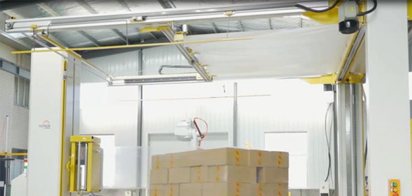 全自动在线缠绕机是一款配合自动流水线一起使用的一款缠绕机在线式缠绕机由PLC控制,可实现自动检测,自动输送,自动缠绕包装、自动上断膜一整套包装工序,完全实现无人化操作;自动覆膜机是将托盘货物顶部覆盖一层防雨膜,与缠绕机配合实现对托盘五面覆盖包装,起到防尘防潮加固等作用。适用于托盘类货物,较大较重的物品缠绕包装。